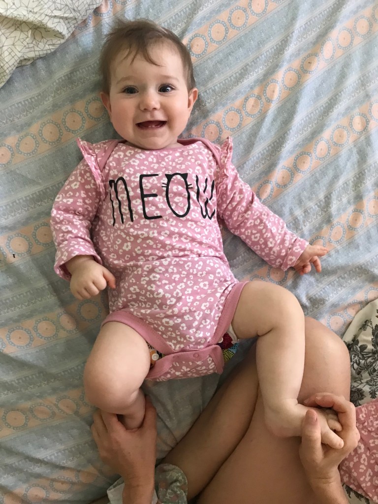 Her favorite game is when we use google home. When she gets fussy and we need to change her to prevent her from turning to her belly we start saying “Ok, google, how does a cat sound like?” and google responds with a cat sound. Depending on how fussy she is we go through 4-10 different animals at the time. Recently we have noticed that when we say “ok google, how does the elephant sound like?” she immediately starting making an elephant noise similar to the one google makes (pure scream of aaaaaaa…). She has this reaction only on elephant, maybe because this is the easiest sound to mimic.